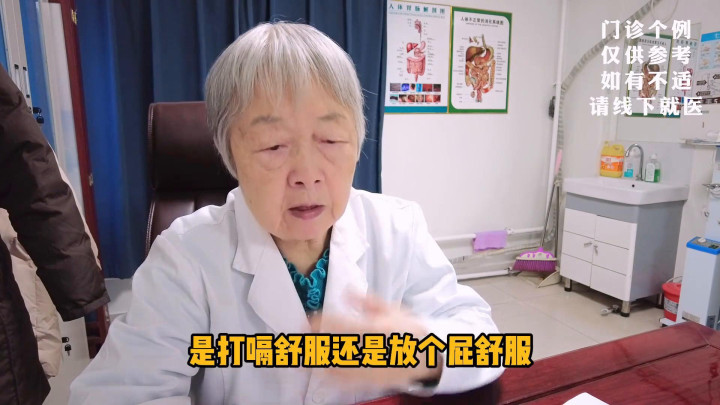 我告诉您说,打嗝舒服了,气在胃里头,放屁舒服了,气在肠子里头,这俩不是在一个地方。因为胃排空的时间大概4-6个小时,有的两个小时就在排空。如果在两个小时之内胃胀,那是吃多了,少吃一口,多嚼嚼。如果不是因为放屁舒服,在肠子里头揉肚子就让它放屁去,所以自己分辨不出来。