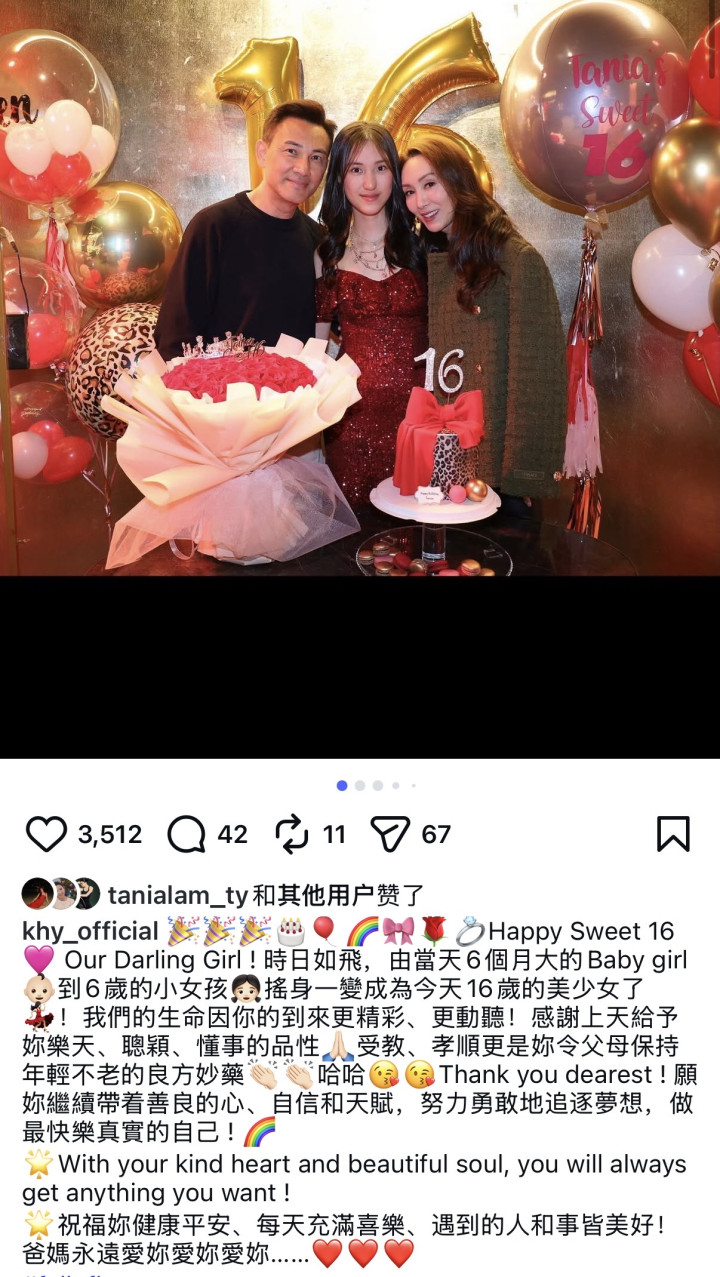 郭可盈晒出为女儿庆生的照片之余,也感慨万千。她称时间飞快,女儿已经从六个月大到六岁的小女孩,变成了16岁的美少女。而她与林文龙都因为女儿的到来而让生命变得更精彩,更动听。她更称女儿的听话、聪颖、懂事以及孝顺让她与林文龙保持年轻不老。字里行间,郭可盈都流露出以女儿为傲的心情。事实上,林天若也的确让郭可盈倍感自豪,长得漂亮并且聪颖,这是先天的,而听话以及善良乃至学业精良,这是后天所铸造而成,其中有郭可盈与林文龙悉心培养的功劳。