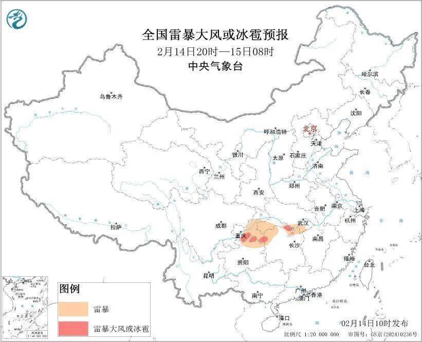 方翀指出,此次对流过程主要影响时段在14日夜间到15日,西南东部、江汉和江南北部等地将出现大范围雷暴天气,尤其在重庆南部、贵州和湖北中南部、湖南北部局地可能出现雷暴大风、冰雹或短时强降水等强对流天气。